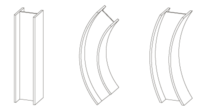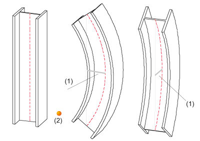 You use this function to curve beams. The curving can be performed - in flange or web plane - by specifying the rise or the radius.
