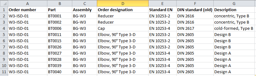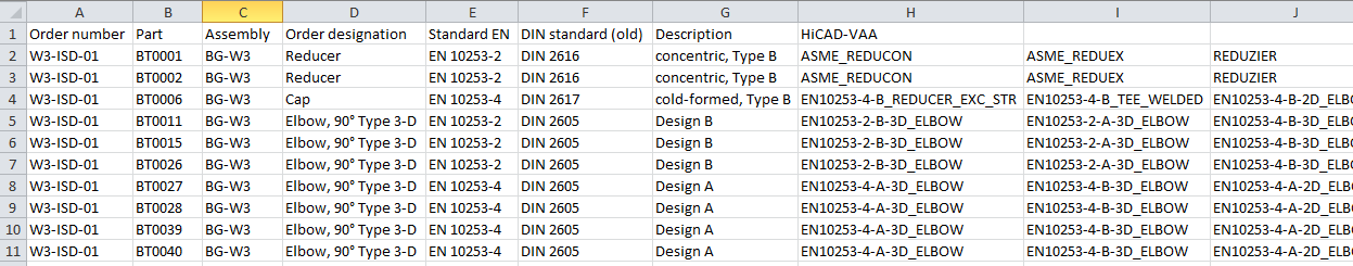 Now, all VAA files in the PlantParts directory will be searched and the attribute BESTELLVERMERK(=Order note) will be compared with the columns Order designation, Description and Standard EN of the customer list.