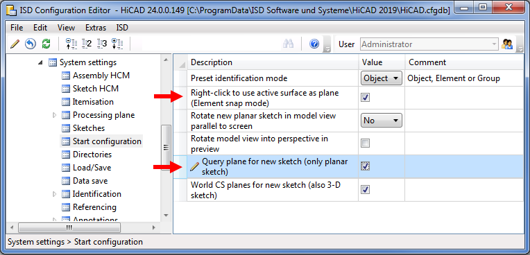 HiCAD 2019 automatically determines the itemisation mode to be used. That is, it is no longer possible to choose the mode via the Configuration Editor.
