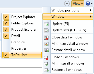To activate the ToDo list, select View > Window > ToDo lists.