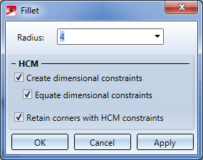1. Since all fillets are to be identical, choose Distance > Equate radius for the non-dimensioned fillets.
