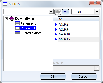 2. Open the Bore patterns catalogue. Choose Extras > Table > New and create a new table for the bore pattern, e.g. PATTERNEXP.