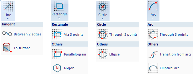 After calling a corresponding drawing function, the Sketching Tool dialogue window is displayed, e.g.: