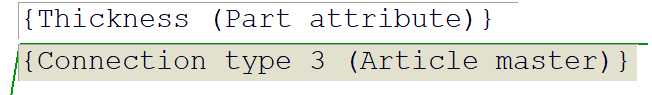 After selecting an attribute, this attribute will be shown within a text block in curly brackets.