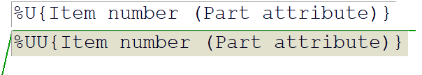 If you want to use attributes of the superordinate part when annotating a part, you can precede the attribute with the string %U. The letter U can also be used repeatedly so as to use the attributes in the structure of even higher parts, e.g.