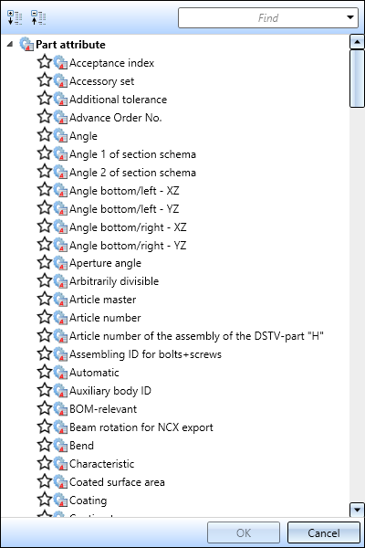 The selection list can be expanded and collapsed. Also, you have the option to search for specific attributes by entering the corresponding search term in the Find input field.