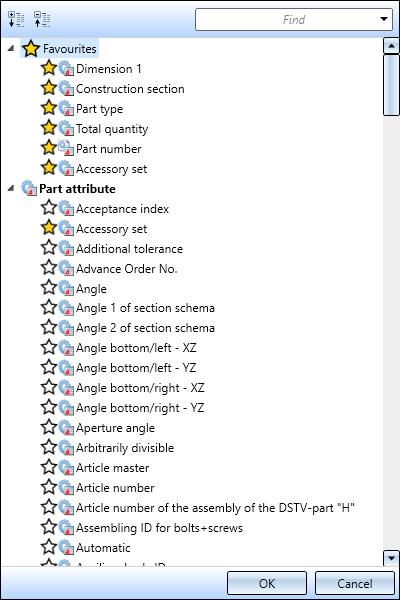 . Attributes marked in this way are listed in the selection window under Favourites. If Favourites are defined, the list of Favourites is automatically expanded when the Attributes button is clicked.