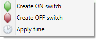 Right-clicking the timeline opens a context menu, enabling you to create ON and OFF switches. Furthermore, you can use the Apply time function to take over the length of a time interval as a time value for a motor or a conveyor. The dialogue window for the motor or conveyor will be displayed, changed values will be highlighted in red.