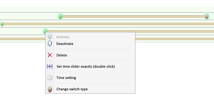 Right-clicking a switch opens a context menu with editing functions. You can, for example, activate or deactivate switches, delete them or reverse the switch type. Multiple selections (CTRL) are also possible.