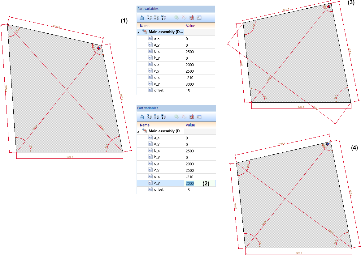 - For updating the parts after changes of the original part, the function Recalculation with updating of associated parts