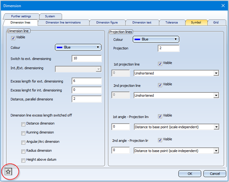 can now be saved as favourites for a later reuse. To do this, click on the symbol in the dialogue window. Read more about managing of favourites in the HiCAD Basics Help at Manage Favourites.