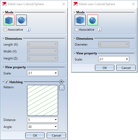If one or more HiCAD Point options are used to define the cuboid, then the checkbox Associative can be used to define how the detail view should behave if the corresponding points are moved due to changes in the construction.