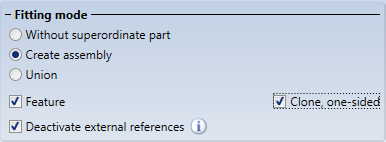During designing, reference is often made to other drawing objects when inserting parts, for example when you want to fit a hole relative to the centre of a hole in another part, or cut a beam on another part. This reference between two parts is called an external reference. If the part to be cloned (copied) has feature parameters with an external reference, you can now use the checkbox Deactivate external references to specify whether the external references are to be taken into account during cloning or not. By default, the checkbox is inactive. This corresponds to the previous standard behaviour when cloning parts. If the checkbox is active, the external reference of the original is taken over for all cloned parts.