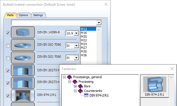 When installing bolted connections, the corresponding standard countersink is now available for bolts according to DIN/ISO.