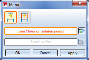 Use this function to mirror lines and isolated points of a sketch. When you call the function, the Mirror dialogue window will be displayed:
