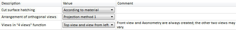 The 4 standard views function creates in one step the front view, the axonometric view and two other views. These two other views can be specified via this parameter. Preset are the side view, from left and the top view.