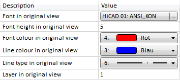 At Details you can specify the representation of detail view identifications and their font, height and colour. You can select the font, its height and colour, and the line colour, the line type and the layer in the original view.
