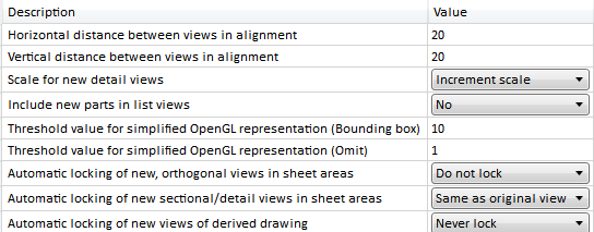 Views can be locked, so that they can no longer be rotated out of the screen plane. Use the Automatic locking... parameters to specify the behaviour in sheet views - separately for the functions 4 standard views / 6 standard views and for sectional and detail views. The default setting for standard views is Do not lock, for sectional and detail views it is Lock. Likewise, you can lock views of derived drawings.
