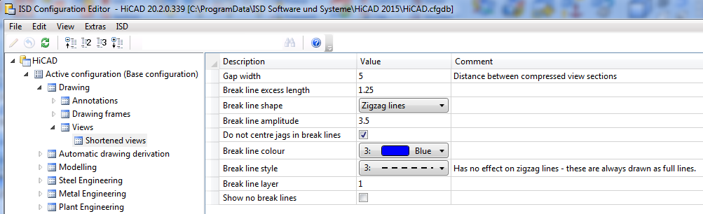 Here you specify the presettings of the shortening parameters for new drawings