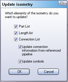 Created isometries and pipe spool drawings can, in case of modifications to the layout plan, also be updated retroactively, without having to regenerate them completely. This applies to part lists, length lists and connection lists. Furthermore, you have the option to make a complete update.