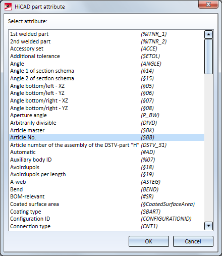 Here you specify which part attributes are to be considered for identical part search and itemisation.