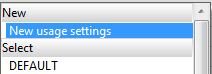 Here you select the usage-dependent setting that you want to assign to the usage and to the part type. Choose the New usage settings from the selection box to define new usage-dependent settings.