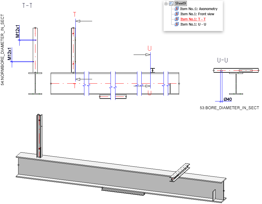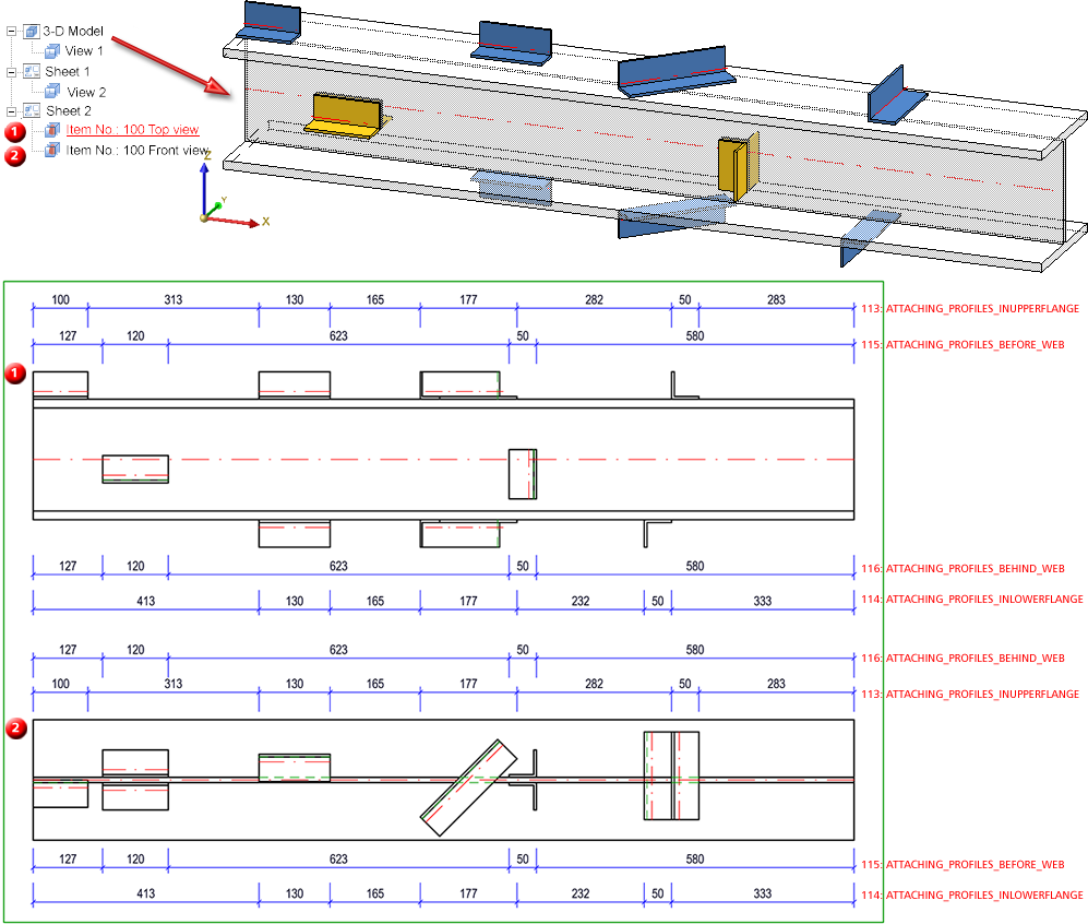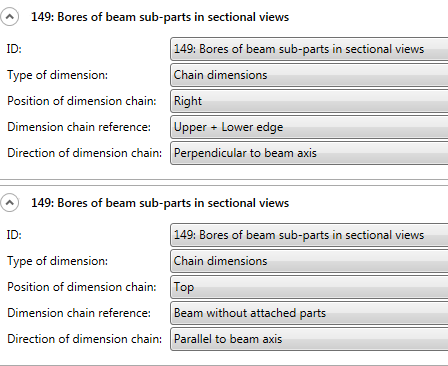 it is now possible to determine under General that attached parts (beams) will be dimensioned according to the Part type attribute in the different chains of dimensions. A respective checkbox is available in the dialogue window. In this way it is possible to dimension hollow profiles / attached parts separately from round steel / attached part, thus improving the dimension structure.