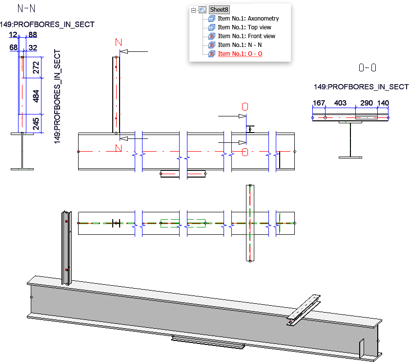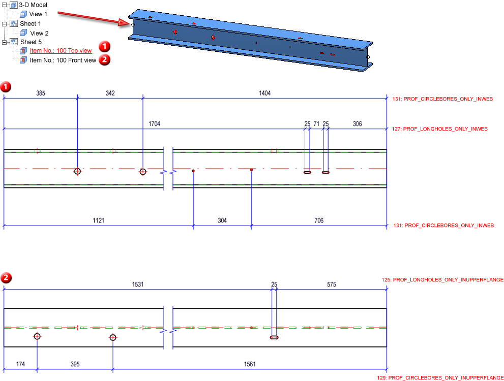 | 161 | Processings in sheets incl. processings perpendicular to view, dimension chains separated according to flanges | SHEETMETALBORES_VERT_SEPERATED |