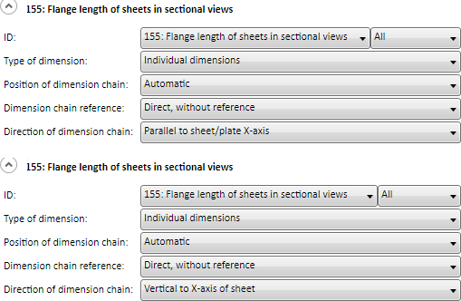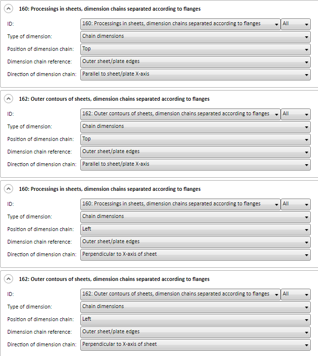 | 162 | Outer contours of sheets, dimension chains separated according to flanges | SHEETMETALOUTLINE_SEPERATED |