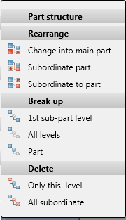 - Hold down the left mouse button and drag the part to the new position within the part structure. Move the mouse pointer onto the part to which you want the selection (together with subordinate parts) to be assigned. Then, release the mouse button.