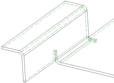 The selection of the connecting edge is decisive for the direction of the new Z-fold. After selecting the outer connecting edge, a preview of the new flanges will be displayed, provided that you have not activated any options that require further value inputs. If the Apply immediately option has been activated, the Z-fold will be inserted immediately. Changes can then be carried out the via Feature log.