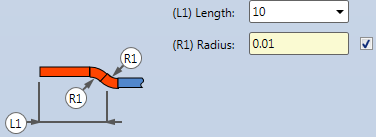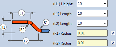 If this option has been chosen, you create the Z-fold by specifying Height and Length. The Radius is loaded from the semi-finished product in this example. Deactivate the checkbox