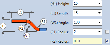 Here you define the Z-fold by entering an Angle. The first Radius here is entered manually, the second Radius will be loaded from the semi-finished product.
