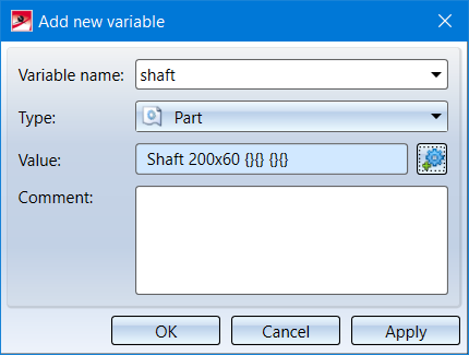 The value of the variable diameter of the part shaft can then be accessed in a formula by using shaft.diameter.