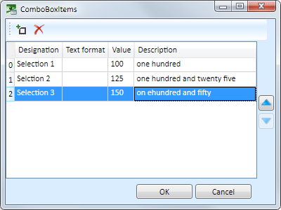 In contrast to the object EditBox, the entries of the selection box comprise two rows. The text of the second row is defined in the Description column.