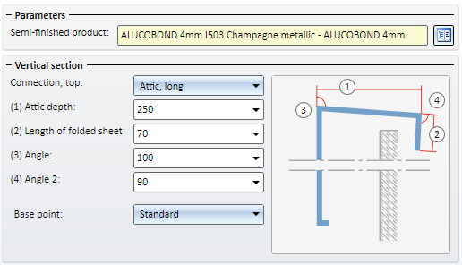 If you choose not Standard, but a different setting for Connection, top, more input fields will be added and the graphic will change. However, the alignment of the field and the graphic will be retained.