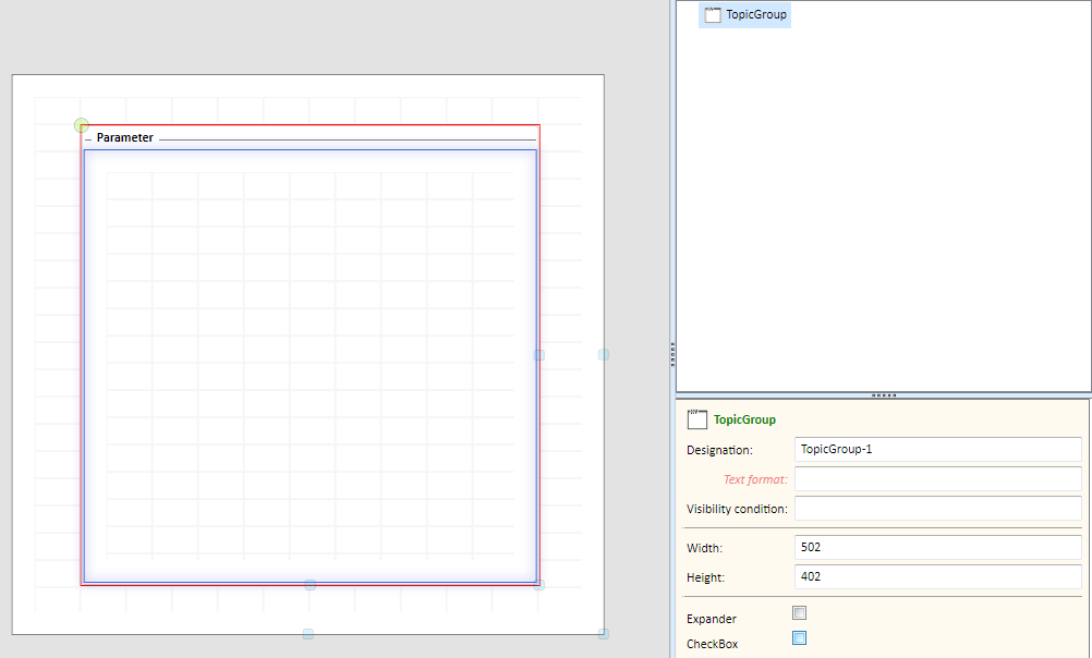 A special case is the ToolBox object TopicGroup + Image Group. This ToolBox object defines a TopicGroup, i.e. a framed n area of the user dialogue and, at the same time, inserts an object of the type ImageGroup.