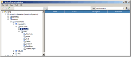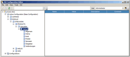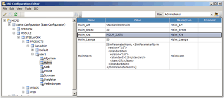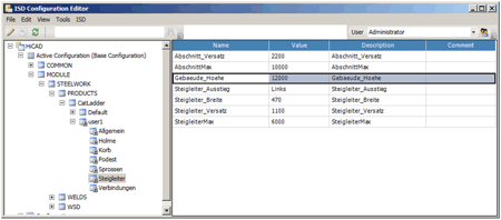 You can use the ISD Configuration Editor to create and manage individual, customer-specific configurations of vertical ladders. To start the Configuration Editor by executing the ISDConfigEditor.exe file in the HiCAD EXE directory.