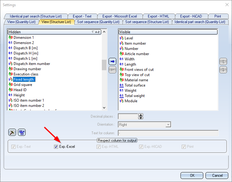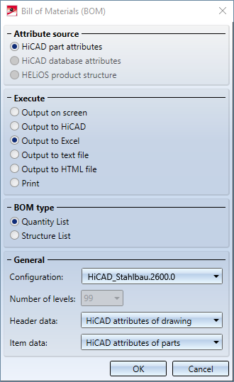 When carrying out a new installation of HiCAD (from HiCAD 2021), the attribute Fixed length is automatically evaluated when creating Excel BOMs with the configuration file HiCAD_Stahlbau.2600.0. For this purpose, the system file for the BOM item data, rm_h_exportpart.hdb, must be supplemented with the line