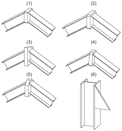 (1) Chamfered plate, (2) Internally filleted plate, (3) Oblique-angled plate, (4) Filleted trapezoidal plate, (5) Collar plate, (6) Haunched plate