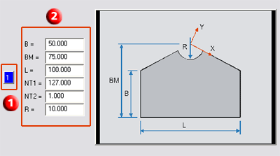 Each plate variant consists of a data record with a unique type number. Each type includes a record with the parameters that define the plate. The shipped VAD files initially contain only one such data record with type number 1. However, you can extend these files individually, either directly in HiCAD or using the HiCAD variant editor.