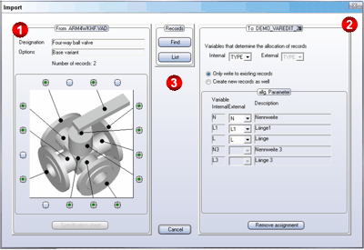Newly created records are assigned a type designation that is automatically created from XXX plus consecutive numbers. Elements of records for which values from the source file that were not taken over are indicated in the list by XXX and tagged as empty. These elements are indicated by an empty field in the Value Value column of dialogue box.