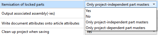 For the parameter Itemization of locked parts at PDM > Drawing Management the texts in the selection box have been renamed: