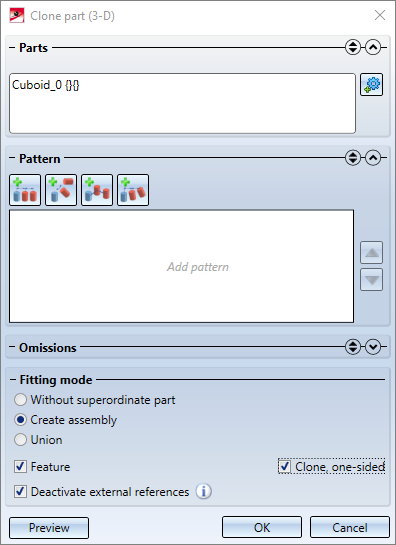 When you have activated the Feature option, you can add further patterns to a parametric cloning. Just double-click the Part cloning feature to start the function dialogue anew.