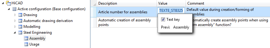 The ISD default setting is the text stored in the HiCAD text key TEXTE_STB325 , i.e. the string "Assembly".