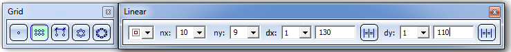 button and enter the number of bores in X- and Y-direction, e.g. nx: 10 and ny: 9 an. For the distance in X-direction enter dx: 130 and click the