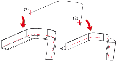 - Identify the guideline (the 3-D composite edge) at the beginning or the end. Note that, in the case of asymmetrical beams like L-beams, the side that you select has an impact on the insertion direction of the beam.