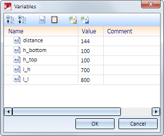 - The variables are currently assigned to the plate. Therefore, activate the plate, right-click and choose Properties > Part variables. Mark all variables, right-click them and choose Cut. Then, activate the assembly, call the Part variables function again and click