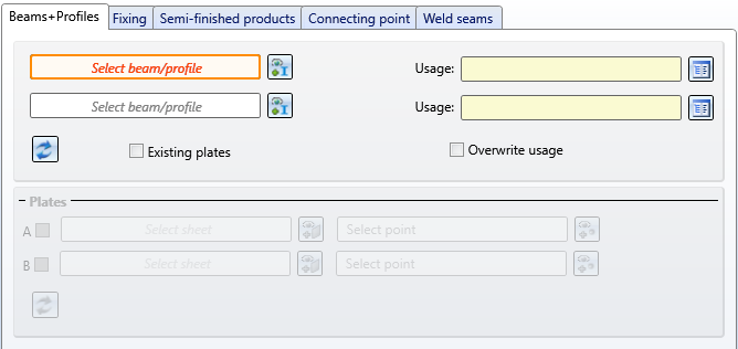 If plates are selected on the Beams+Profiles tab, the settings and options of this tab are inactive.