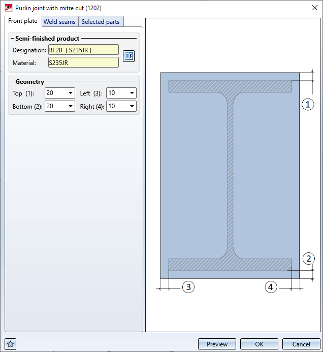 - The Purlin joint with mitre cut dialogue window will be displayed.